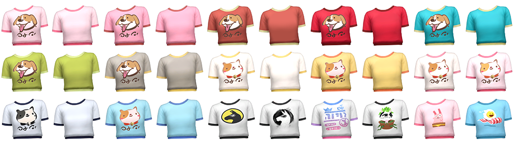 하지만 이 옷은 안타깝게도 전신 의상이고 하의는 말도 안되게 우스꽝스럽습니다. 게다가 상하의 색상 매치는... 좋은 말로 정말 별로입니다. 그리고 이 CC를 제작한 SLL은 과감하게 그 전신 의상을 아래 위로 찢어버렸고, 정말 귀엽고 깜찍한 무늬가 있는 크롭티를 얻을 수 있었습니다!
